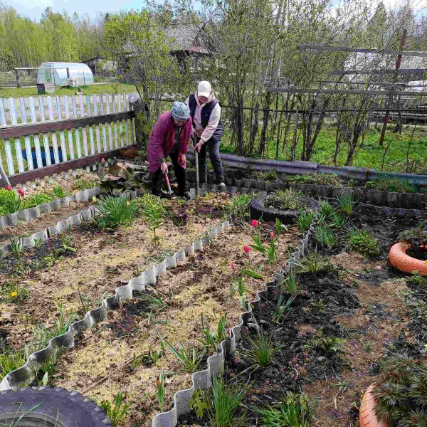 Социальные работники п. Шеманиха трудятся у своих подопечных. Наступило время посадки овощных культур, кошение травы.