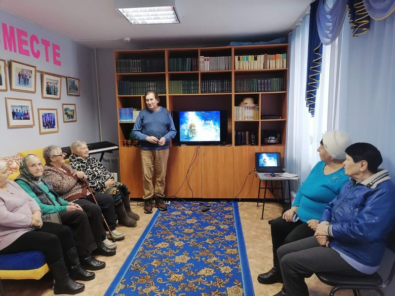 В отделении «Специализированный жилой дом для граждан пожилого возраста и инвалидов» состоялась праздничная программа «Как справляют Новый год люди всех земных широт». За долгую историю праздника советские, европейские, американские и другие традиции успели перемешаться. Порой бывает сложно вспомнить и разобраться, какие обряды празднования Нового Года являются исконно русскими, а какие были позаимствованы. Но это не столь важно, ведь главное, что эти привычные вещи и действия создают ту самую волшебную новогоднюю атмосферу! Участники мероприятия вновь окунулись в новогоднюю праздничную атмосферу, вспомнили традиции и обряды истинно русского Нового года, пели, танцевали ,читали стихи и получали сюрпризы. Все унесли с собой заряд позитива, бодрости и отличного настроения.