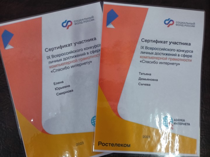 От Краснобаковского муниципального округа в данном конкурсе участвовали два представителя. За свои творческие работы обе участницы получили Сертификаты участника IX Всероссийского конкурса личных достижений в сфере компьютерной грамотности "Спасибо интернету"!