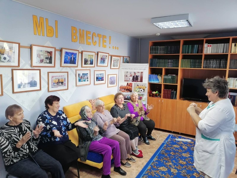 Фельдшер отделения «Специализированный жилой дом для граждан пожилого возраста и инвалидов» Беляева М.И. провела с жителями отделения фитнес час «Упражнения для долголетия» по обучению основам самомассажа.