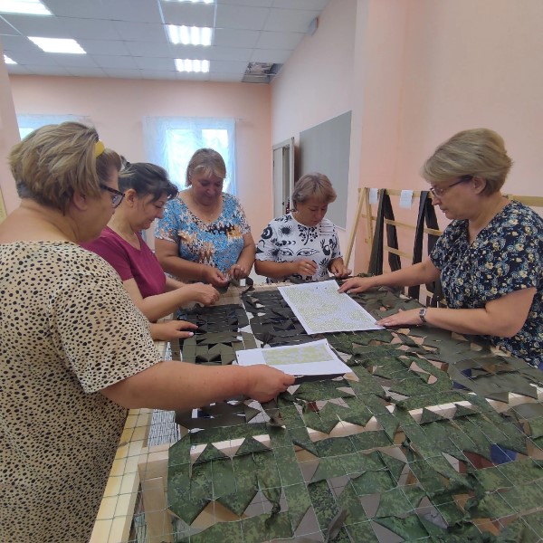 Работники отделений социально-бытового и социально-медицинского обслуживания на дому п. Шеманиха приняли участие в мастер-классе по плетению маскировочных сетей "Сталинград"