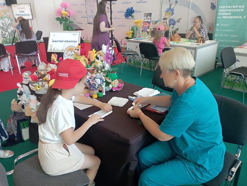 С 4 по 10 августа 2023 года в г. Нижний Новгород на территории АО «Нижегородская ярмарка» проходит ежегодный фестиваль «Семья Нижегородская», целью которого является объединение разных поколений семьи, укрепление межпоколенческой связи, способствуя социализации старшего поколения. 8 августа сотрудники ГБУ «КЦСОН Краснобаковского муниципального округа» тоже приняли участие в этом фестивале и провели для посетителей мастер-класс «Кукла-мотанка». Желающих поучаствовать в нашем мастер-классе было много, это были как дети, так и люди более старшего поколения. Спасибо организаторам за такое замечательное мероприятие, которое объединяет все поколения и дает возможность всем желающим бесплатно получить новые знания и умения ,провести время с пользой!
