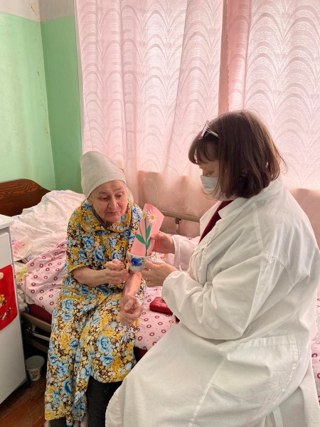 Специалисты отделения срочного социального обслуживания поздравили с Международным женским днем женщин, находящихся на обслуживании в отделении сестринского ухода Краснобаковской ЦРБ