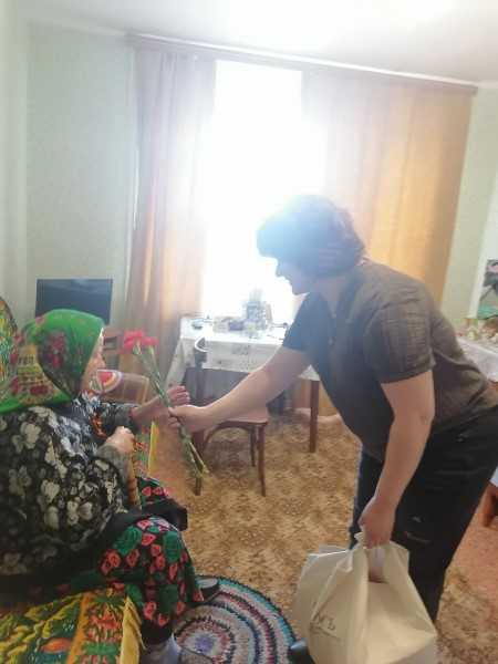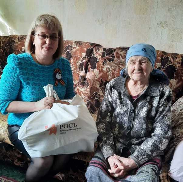 Сотрудники ГБУ "КЦСОН Краснобаковского района" поздравили участника ВОВ и вдов ветеранов ВОВ с наступающим Днем Победы в Великой Отечественной войне и вручили им подарки, предоставленные благотворительным фондом "РОСЬ"