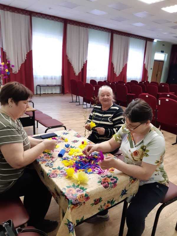 В преддверии первомайских праздников обслуживаемые отделений социально-бытового и социально-медицинского обслуживания на дому п. Шеманиха на мастер-классах изготавливали очень красивые весенние цветочные веточки.