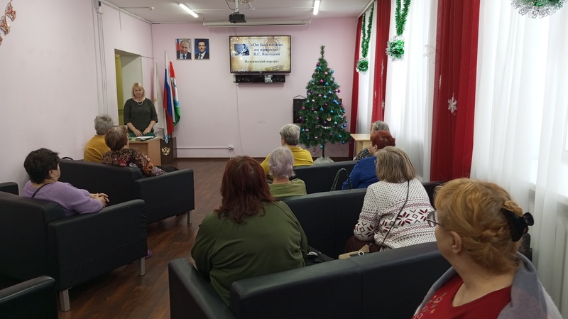 В отделении дневного пребывания ГБУ "КЦСОН Краснобаковского муниципального округа" сотрудник Краснобаковской библиотеки им. Н.Г.Тумакова Яшкина А.Ю. для обслуживающих отделения провела поэтический час « Он был поэтом по природе», посвященный творчеству Владимира Высоцкого .
