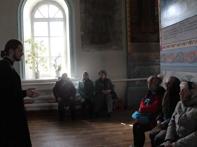 В преддверии Святого Праздника Пасхи в день Страстной пятницы отдыхающие отделения дневного пребывания посетили храм Живоначальной Троицы с. Байково. Настоятель храма о. Илия (Мусин) провел беседу с пожилыми людьми рассказал о службе Великой Пятницы, которая посвящена воспоминанию крестных страданий Спасителя, его смерти и погребения.