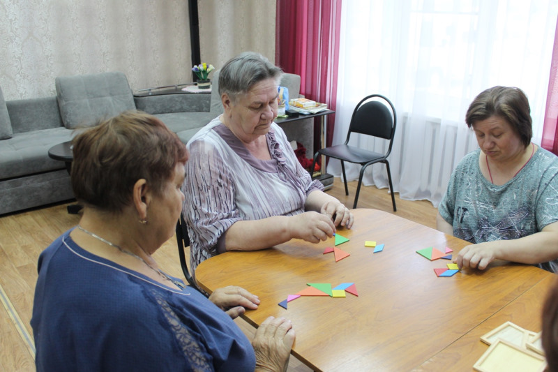 В отделении дневного пребывания для отдыхающих инструктором по трудовой терапии Кузнецовой М.С. было проведено интеллектуальное занятие танграм.