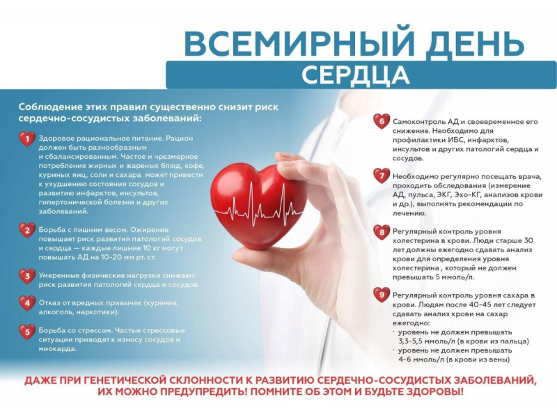 Цель Всемирного дня сердца — привлечь внимание общества к вопросам сохранения здоровья и подчеркнуть важность профилактики сердечно-сосудистых заболеваний, которые являются главной причиной смертности людей во всём мире.