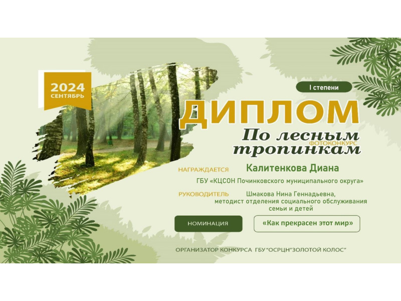 Отделение социального обслуживания семьи и детей приняло участие в областном фото - конкурсе "По лестным тропинкам"