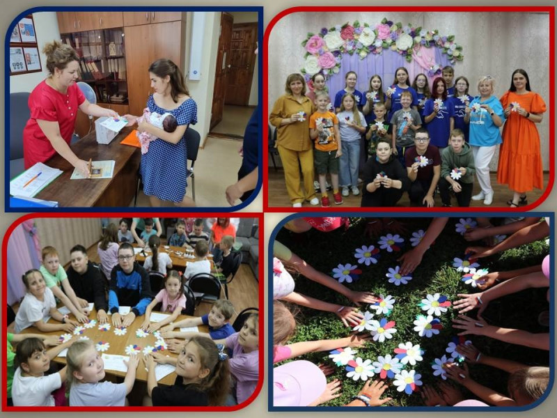 Участники проекта, в том числе находящиеся в трудной жизненной ситуации, при поддержке взрослых создавали символы-ромашки, которые 8 июля в День семьи, любви и верности торжественно передавались новорожденным и их семьям.