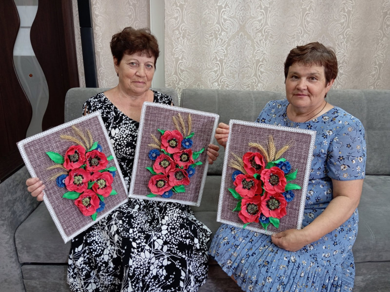 Отдыхающие отделения дневного пребывания изготовили панно "Маки из фоамирана".