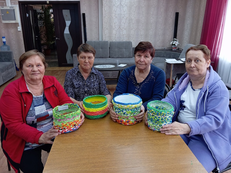Отдыхающие отделения дневного пребывания изготовили кашпо для цветов из пакетов