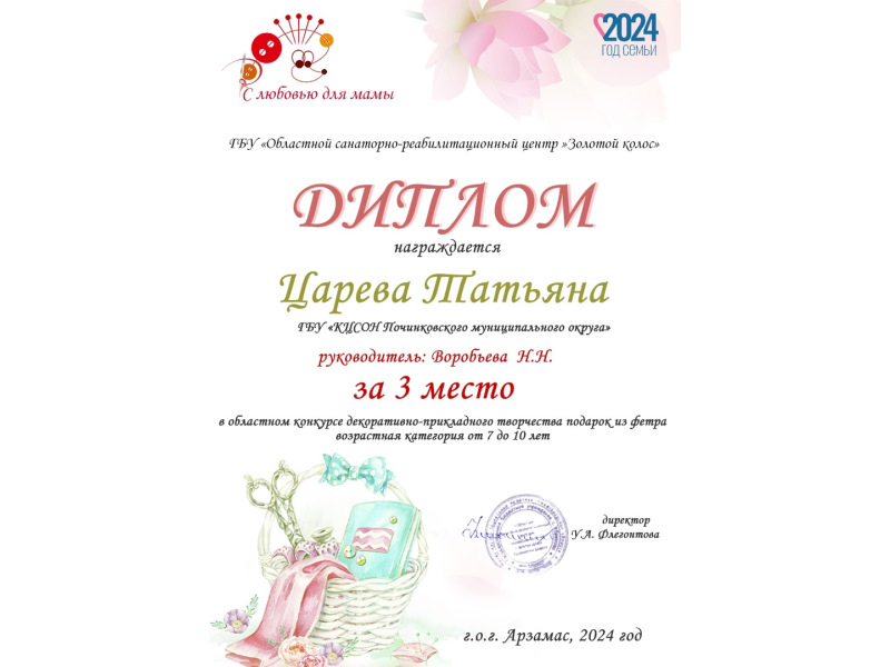 Государственное бюджетное учреждение "Областной социально-реабилитационный центр для несовершеннолетних "Золотой колос"(Арзамасский район) " подвело итоги областного конкурса декоративно-прикладного творчества для детей - подарок из фетра "С любовью для мамы".