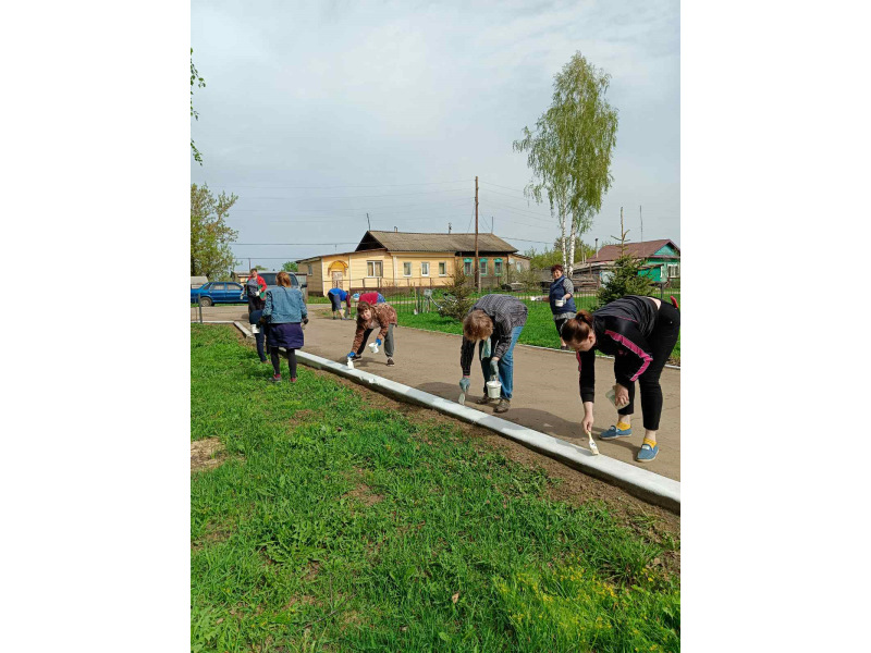 Социальные работники социально-медицинского и социально- бытового отделений обслуживания на дому с. Наруксово на субботнике 27.04.2024г.