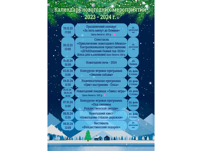 Афиша новогодних мероприятий «Починковского культурно-досугового центра».
