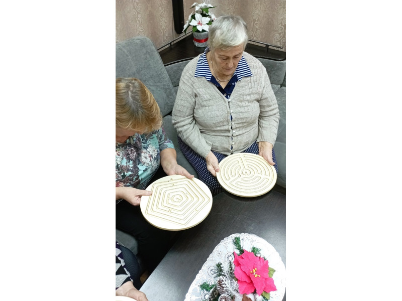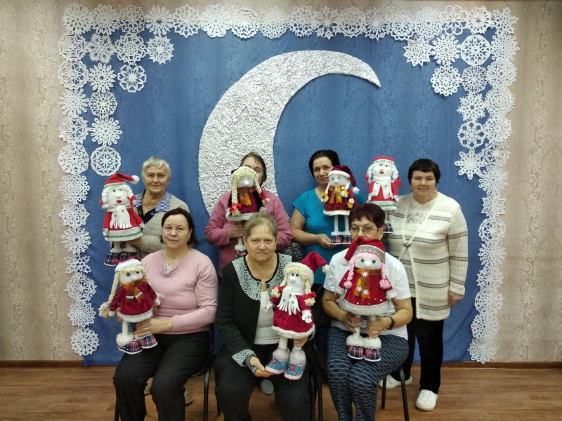 Отдыхающие отделения дневного пребывания на кружке «Волшебный клубочек» изготовили интерьерную куклу снежку