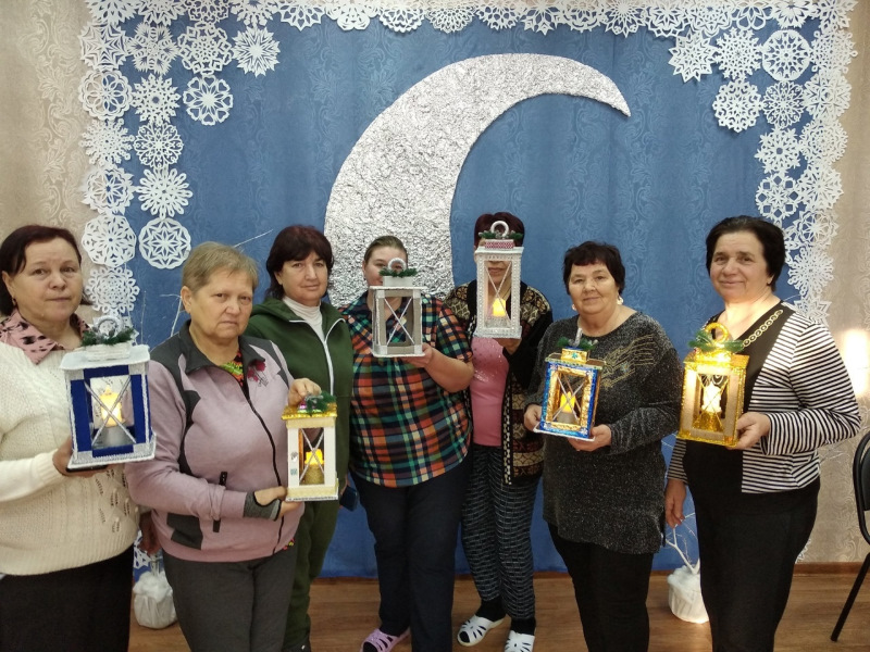 Отдыхающие отделения дневного пребывания изготовили декоративный фонарь подсвечник из картона.