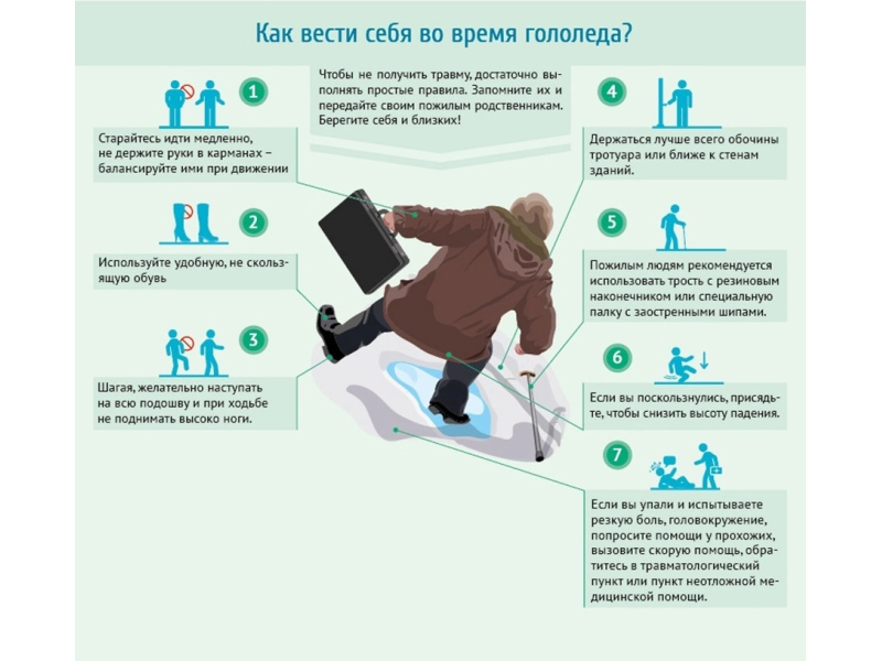 ❄Наиболее частой причиной зимнего травматизма служит гололедица. Особенно переломам подвержены люди пожилого возраста из-за возрастных особенностей их скелета.
