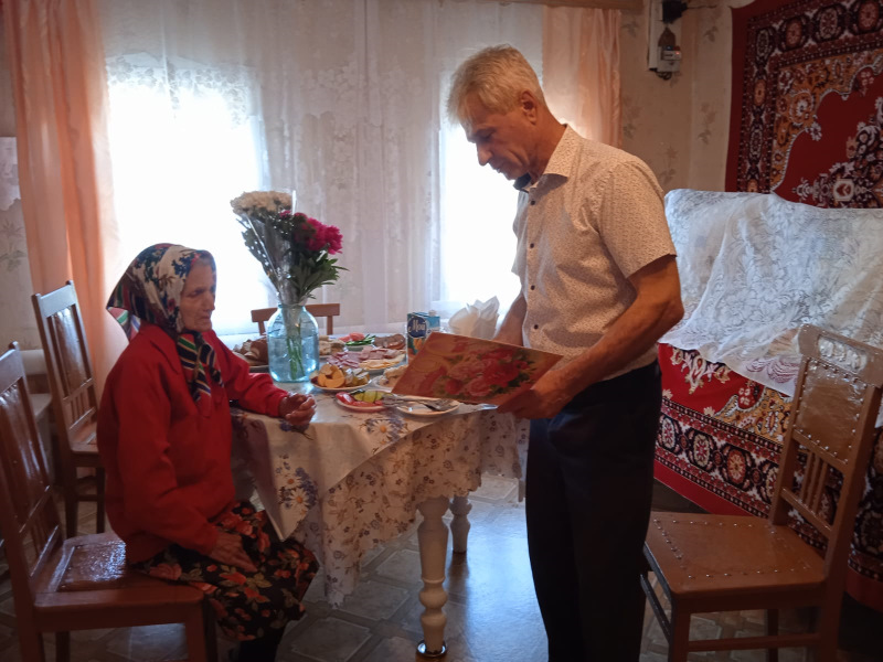 Сегодня исполнилось 90 лет жительницы села Наруксово Чичеткиной Анне Герасимовне. С днем рождения её пришли поздравить начальник отдела по развитию Наруксовской территории Мухин И. А., социальный работник Цыбаева Е. В., медицинская сестра Гуськова Е. А.