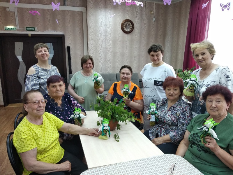 В отделении дневного пребывания прошло мероприятие «Троица, троица, земля травой покроется», отдыхающие познакомились с историей и обычаями празднования Троицы, сплели венки из березы, украсили березу шелковыми лентами и загадывали желания. В этот день вспомнили еще одну традицию: молодые девушки и женщины «кумились» через березовый венок, целовались и становились подругами на всю жизнь, под музыку и народные песни водили хоровод, славили березку.