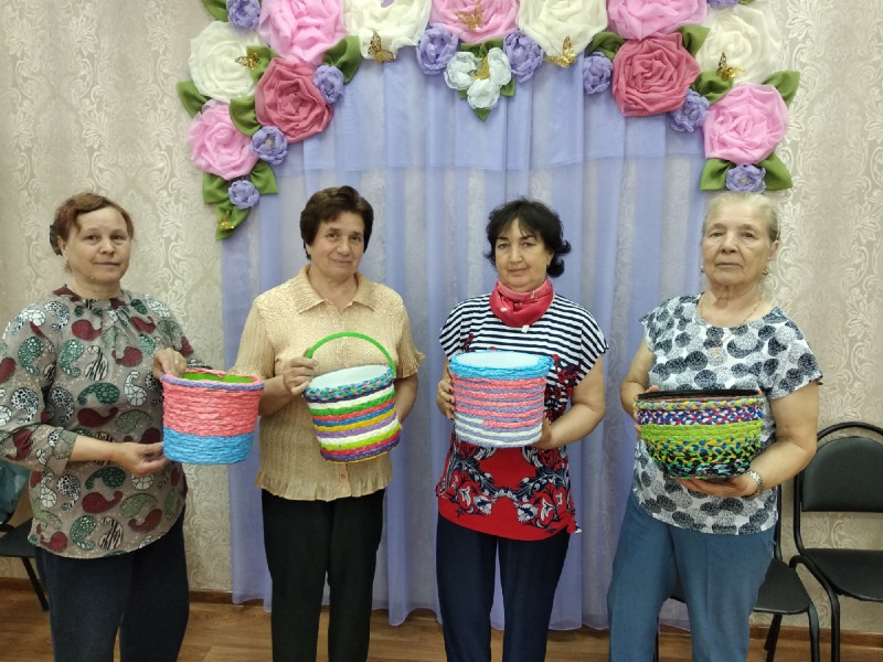 Отдыхающие отделения дневного пребывания на кружке «Волшебный клубочек» изготовили красочные кашпо для цветов из полиэтиленовых пакетов
