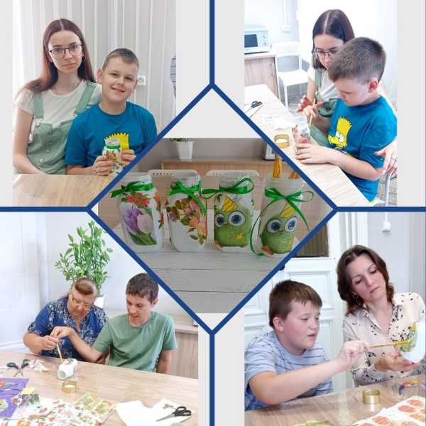 В отделении дневного пребывания центра социального обслуживания специалистами отделения срочного социального обслуживания и отделения дневного пребывания для детей с ограниченными возможностями здоровья был проведен мастер-класс по изготовлению карандашницы в стиле декупаж.