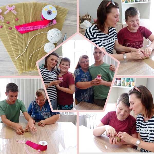 В отделении дневного пребывания центра социального обслуживания населения специалисты отделения срочного социального обслуживания и отделения дневного пребывания провели занятие для детей с особыми потребностями здоровья по изготовлению свечей из вощины «Волшебная свеча».