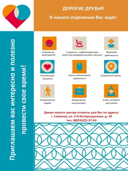 Приглашаем людей старшего возраста интересно и полезно провести время в отделении дневного пребывания!