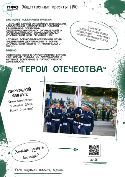 В Приволжском федеральном округе реализуется несколько окружных общественных проектов разной тематической направленности. Один из них - "Герои Отечества".