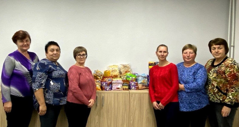 В этот раз социальные работники социально-бытового отделения №7 собрали наборы сладостей, чай, кофе и передали волонтерам для отправки бойцам на передовую.