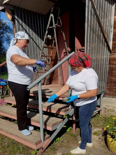 По доброй инициативе социальные работники отделений социального обслуживания №10 и №12 активно участвуют в благоустройстве храма «Казанской иконы Божией Матери» в деревне Малое Зиновьево. Своим трудом облагораживают помещения и территорию возле храма.