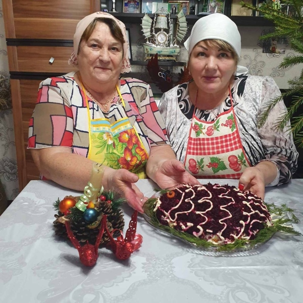 Сегодня социальный работник Галина Николаевна Гаврилова и ее обслуживаемая Лидия Михайловна Гусева попробовали приготовить "Сельдь под шубой" по-новому.