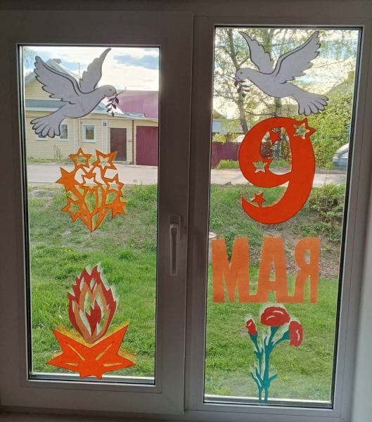 , украсив окна обслуживаемых к празднику 9 Мая.