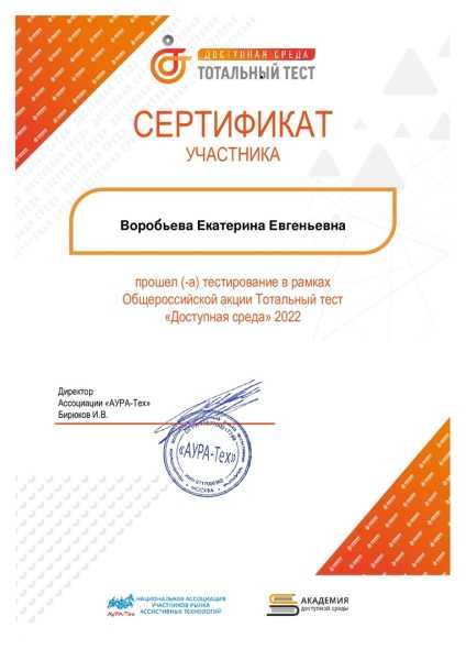 Со 2 по 10 декабря 2022 г. проходит Общероссийская акция Тотальный тест «Доступная среда» 2022, которая призвана привлечь внимание к правам и потребностям людей с инвалидностью.